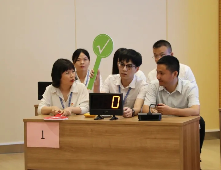 這次比賽由集團本部和各子公司派出的39名選手組成13支隊伍參加。比賽采?。常懊肟靻柨齑稹⒛惚任也?、現(xiàn)場實操、擂臺賽、判斷題、觀眾互動等多種形式進行,每個環(huán)節(jié)由易到難,逐層遞進,環(huán)環(huán)相扣。比賽中,各隊參賽選手踴躍答題、冷靜思考、沉著應對、密切配合,以扎實的知識功底展開了一場腦力與智力的較量,現(xiàn)場氣氛緊張激烈,精彩紛呈,在座觀眾發(fā)出由衷贊嘆,自發(fā)地響起了雷鳴般的掌聲。