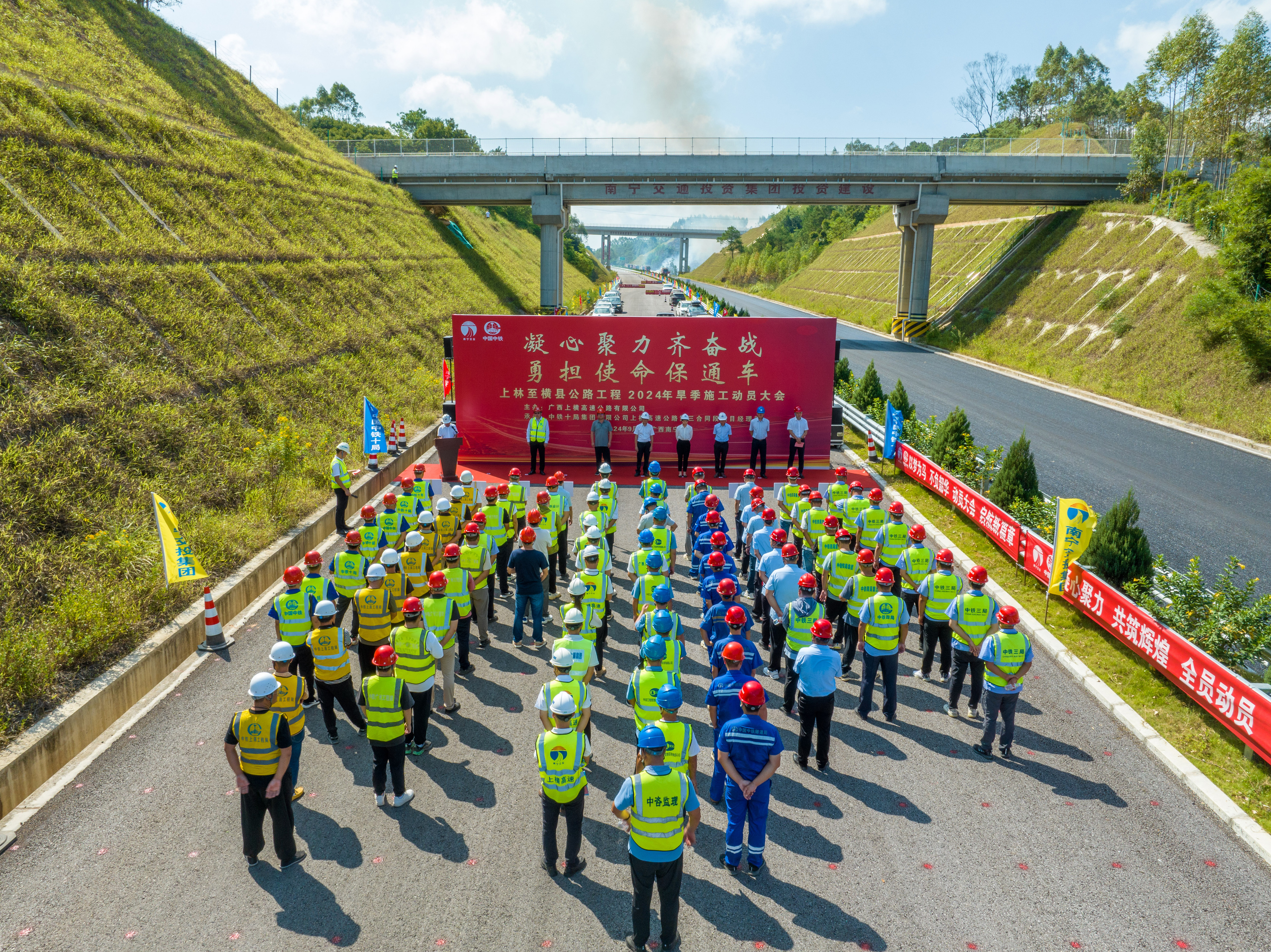 上林至橫縣公路一期工程舉行“凝心聚力齊奮戰(zhàn) 勇?lián)姑Mㄜ嚒?2024年旱季施工動員大會